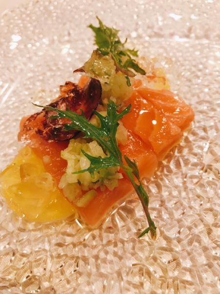 この素晴らしいトキシラズをルイベにし、今が旬な白瓜と白バルサミコと合わせてご用意しております。
